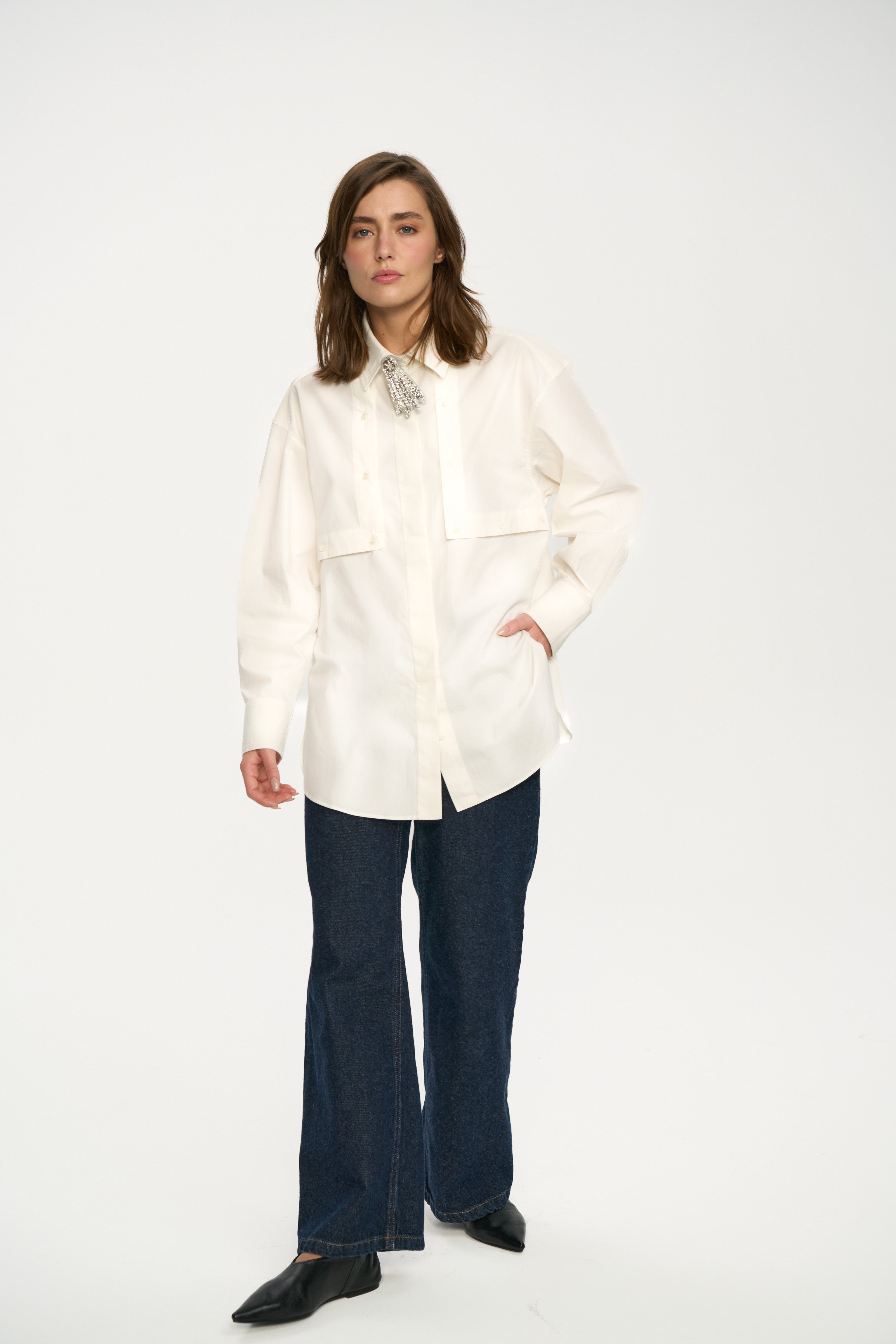 Світло-блакитна бавовняна сорочка з перламутровими ґудзикам. Продуманий крій для зручності годування. Класна база для будь-яких ситуацій, на кожен день.